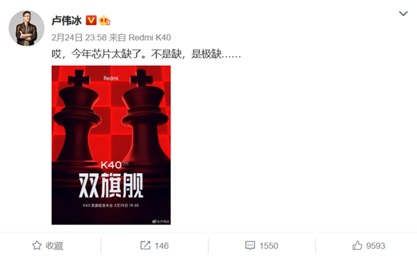 就連小米中國區(qū)總裁盧偉冰也在社交媒體稱:“哎,今年芯片太缺了。不是缺,是極缺......”??梢姡@物料是有多缺。