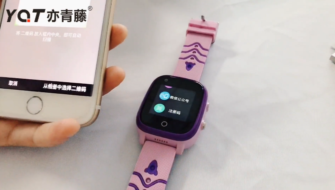 在插卡之后,長(zhǎng)按手表開(kāi)機(jī)鍵開(kāi)機(jī),然后找到“二維碼”,在這里面會(huì)有“掃碼下載”的APP二維碼,然后用手機(jī)微信掃一掃,根據(jù)提示下載相應(yīng)的APP。