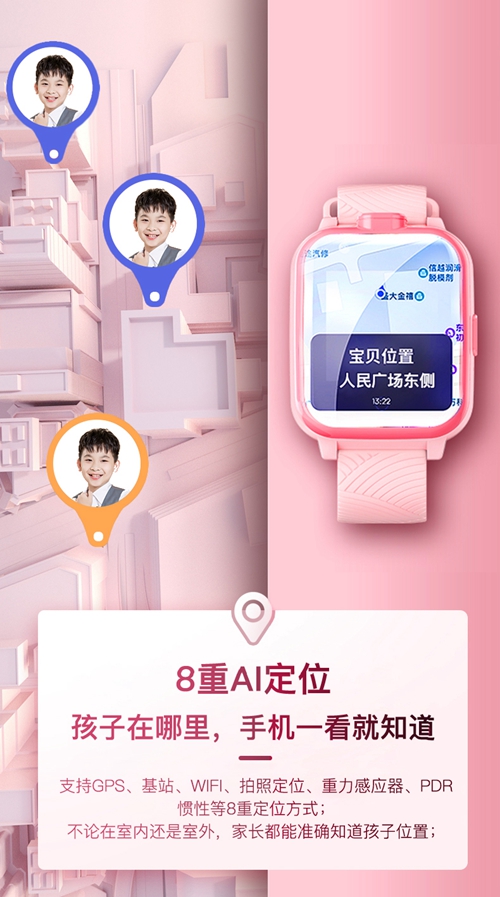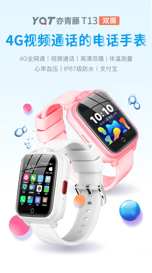 亦青藤兒童智能手表T13有粉、白、藍、黑4種配色,潮流時尚中,又可愛實用